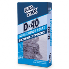 Ο σοβάς D-40 εφαρμόζεται τόσο σε εσωτερικές όσο και σε εξωτερικές επιφάνειες, σε τοιχοποιίες από τούβλα, τσιμεντόλιθους και σκυρόδεμα. Δημιουργεί κατάλληλο υπόστρωμα για την εφαρμογή τελικής στρώσης σοβά, όπως είναι ο D-41, οι έγχρωμοι υδαταπωθητικοί σοβάδες HYDROSTOP DS-74 και DS- 75, καθώς και ο εύκαμπτος σοβάς HYDROSTOP PLASTER ELASTIC της DUROSTICK.