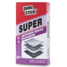 Η SUPER ΑΚΡΥΛΙΚΗ κόλλα είναι κατάλληλη για επενδύσεις πλακιδίων χαμηλής και μη απορροφητικότητας, όπως klinker, cotto, γρανίτες, υαλοψηφίδες και πορσελανάτα πλακίδια,σε τσιμεντοκονίες δαπέδων και σοβατισμένους τοίχους, τόσο σε εσωτερικούς όσο και σε εξωτερικούς χώρους.Συνιστάται και για δάπεδα από μωσαϊκό ή δάπεδα που υπόκεινται σε ιδιαίτερη καταπόνηση.